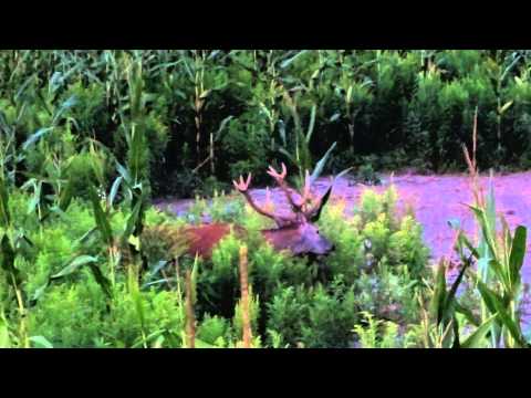 Jeleń byk w kukurydzy, red stag eats corn,