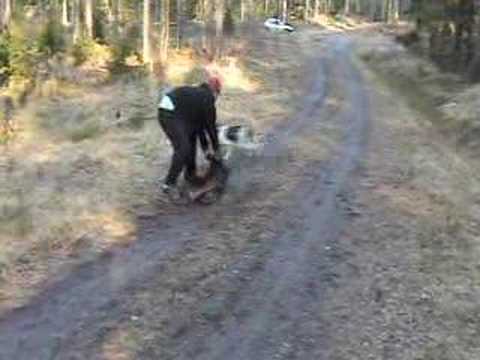 Jaktlabbe jagar vildsvin i Fredskog