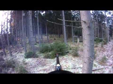 Vildsvinsjakt. En gylta bryter plötsligt ut men svingen sitter som den ska