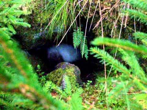 Zacko skäller på ko ock kalv i mossen bakom Stines stuga.