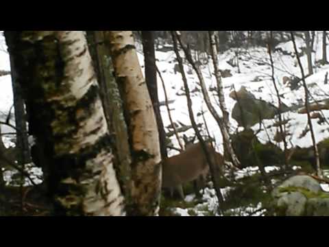 Finnstövaren Bella drev lodjuret till det träade i en stor gran. Efter ett tag så väljer lodjuret att klättra ned. Försökte filma men det var svårt med en jaktsugen …